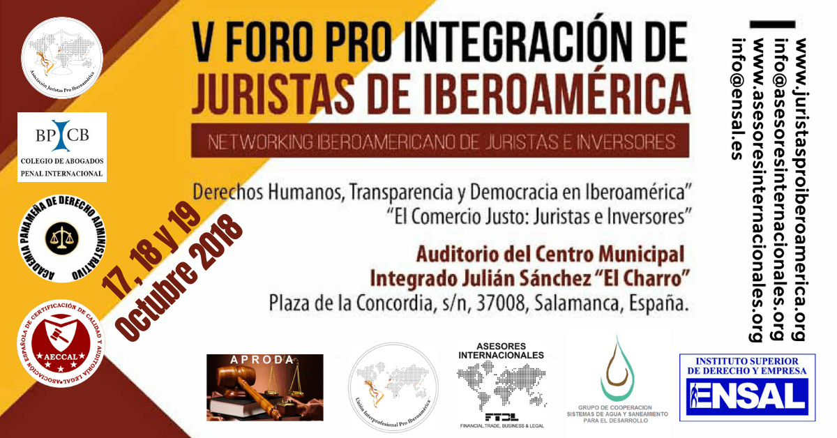 V Foro Pro Integración de Juristas de Iberoamérica, Salamanca 17, 18 y 19 de Octubre de 2018