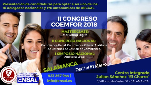 COEMFOR 2018 es un Congreso Profesional organizado por AECCAL (Asociación Española de Certificación de Calidad y Auditoria Legal) destinado a Juristas, Economistas, Peritos Mercantiles, Graduados Sociales y Psicólogos.